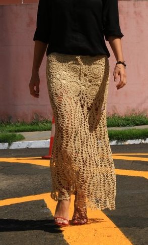 Há quem prefira a saia um pouco mais comprida pra usar com salto,mas eu gostei assim tbm.